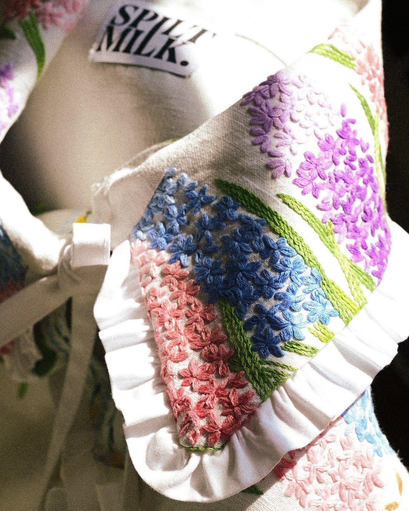 Sustainability and eco conscious design is at the heart of SPILTMILK. All of our garments are constructed using post-consumer textiles, helping to reduce textile waste from around the world.