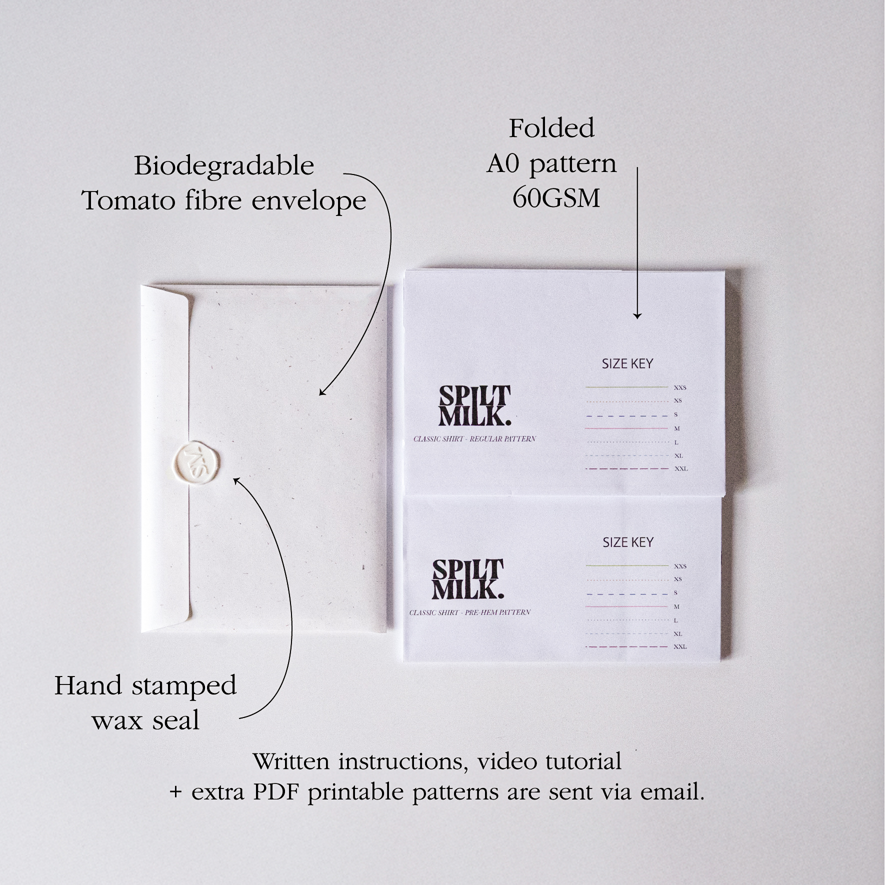 Your pattern arrives in a biodegradable, hand-stamped and wax-sealed envelope.