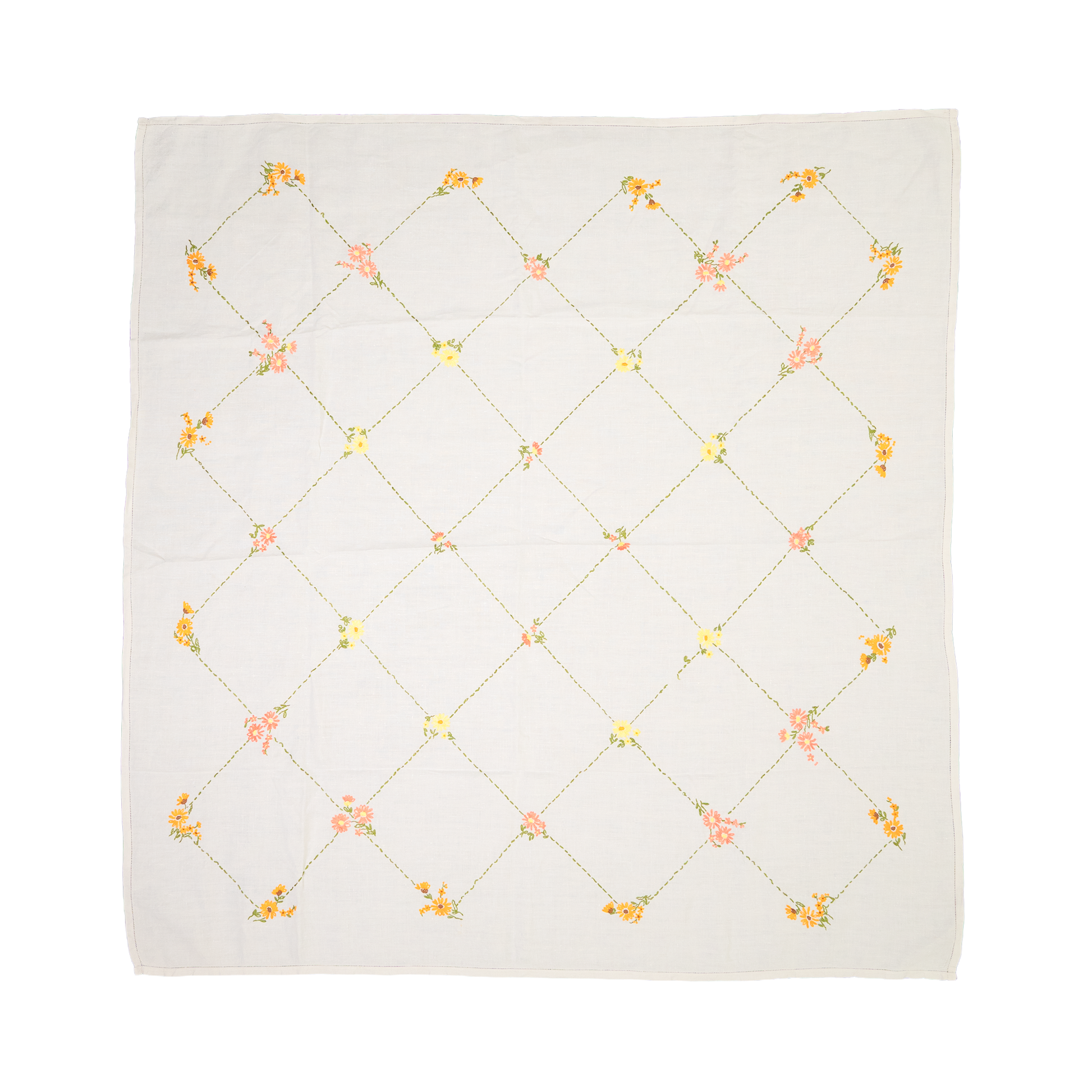 - A hand-selected vintage embroidered tablecloth, chosen for its timeless elegance and unique character.