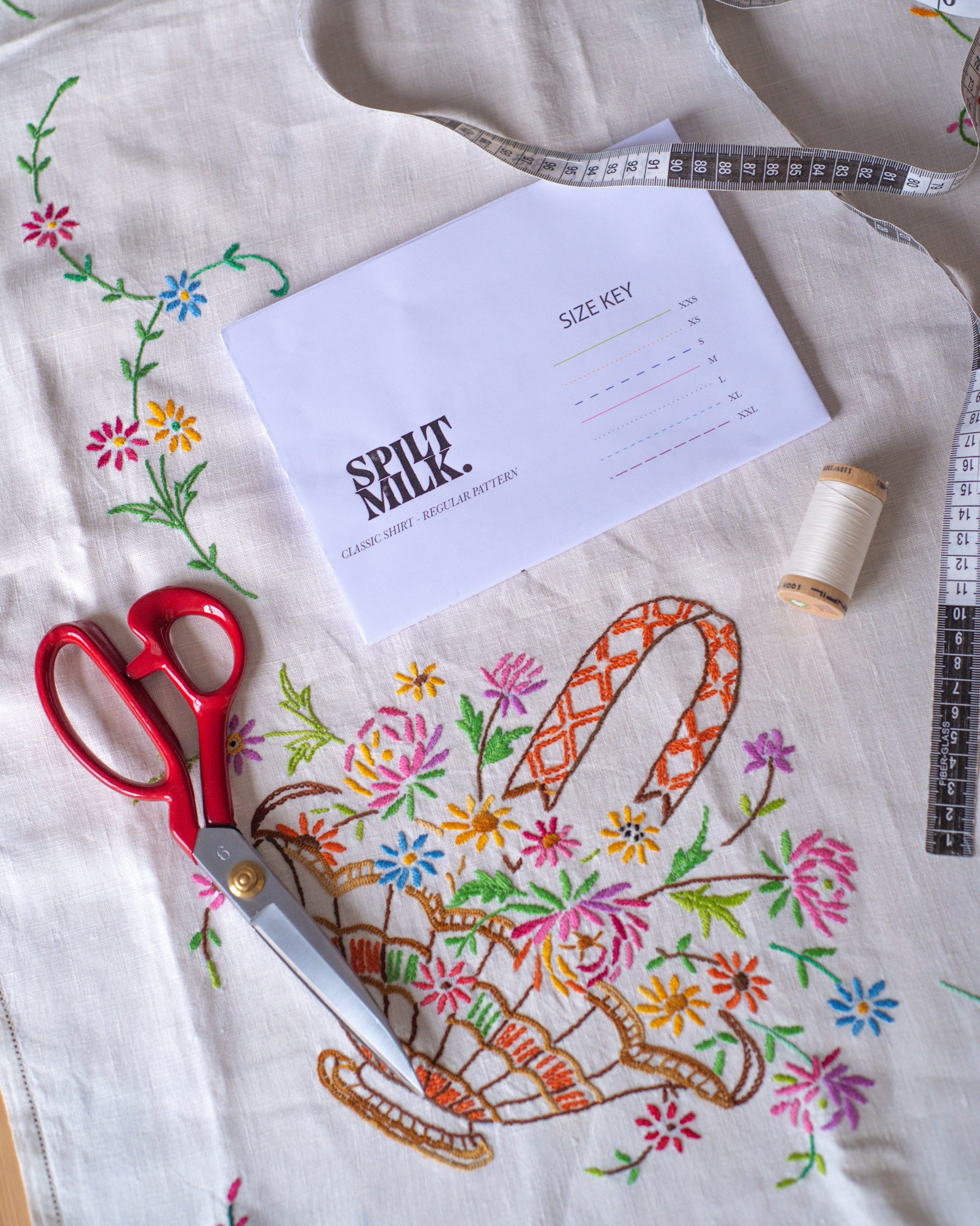 Note: Tablecloths are vintage and may exhibit wear or staining. The kit’s pattern placement and construction have been optimized to minimize any impact on garment integrity and appearance. Unfortunately due to shipping rules, scissors cannot be sent international only UK based orders can receive the scissors.